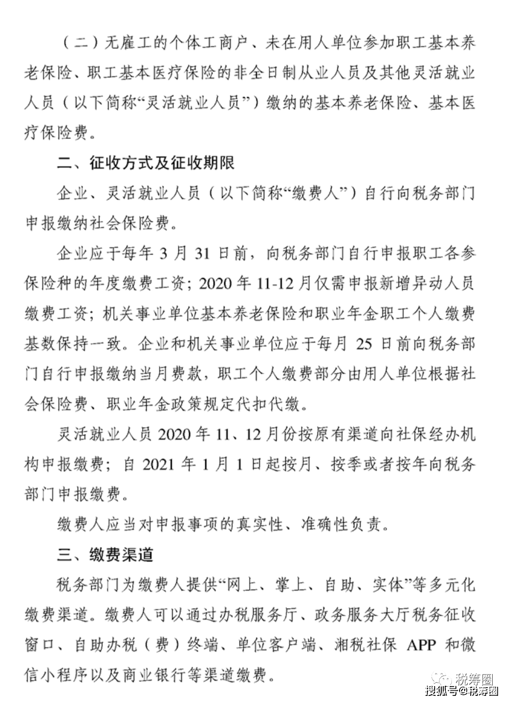 (二)灵活就业人员社会保险费缴费渠道